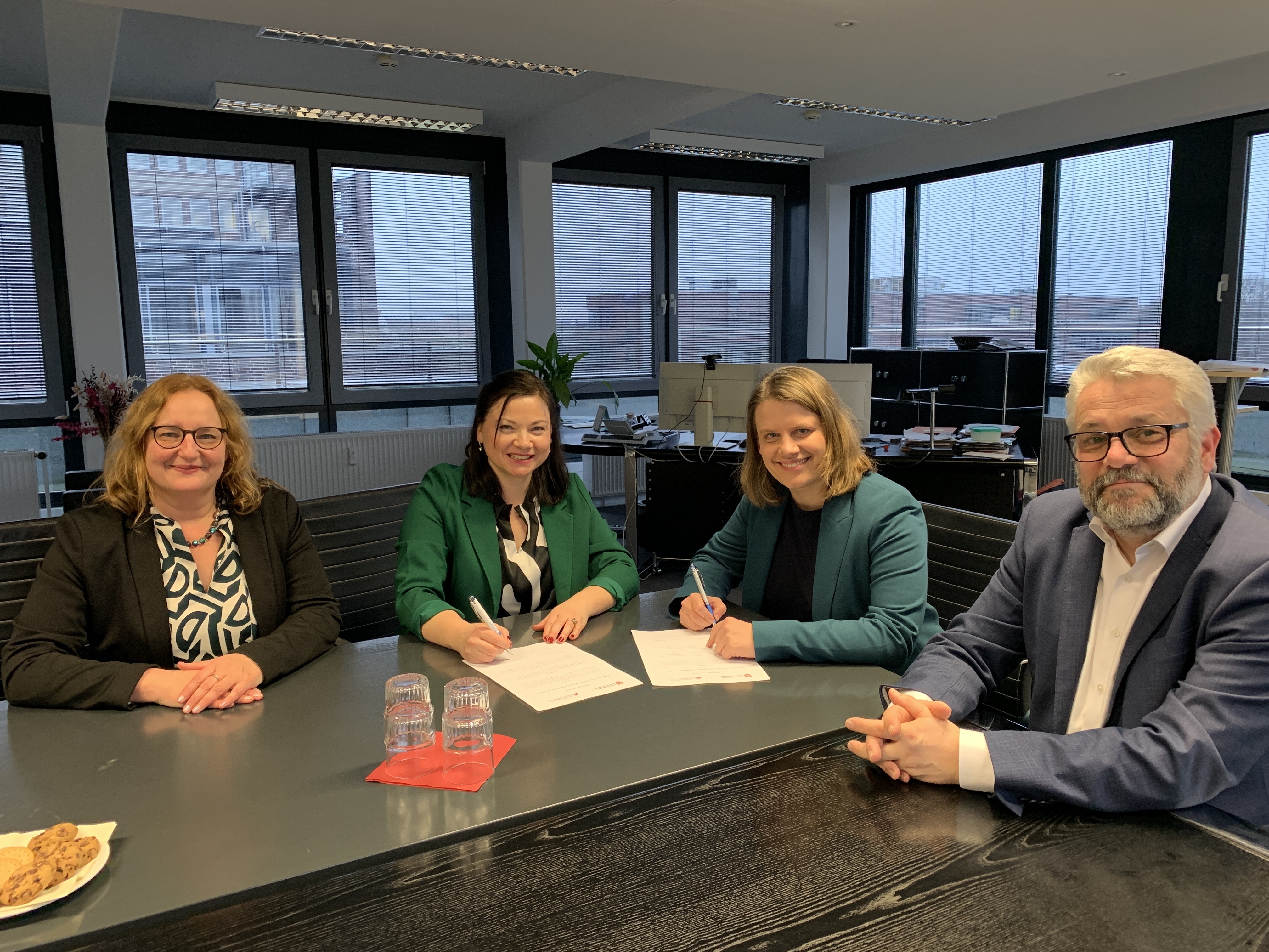 Dr. Friederike Meyer zu Schwabedissen (Vorstand Transferagentur Niedersachsen e. V.), Dr. Svetlana Kiel (Geschäftsführung Transferagentur Niedersachsen e. V.), Kultusministerin Julia Willie Hamburg, Carsten Milde (Abteilungsleitung 3 , MK)