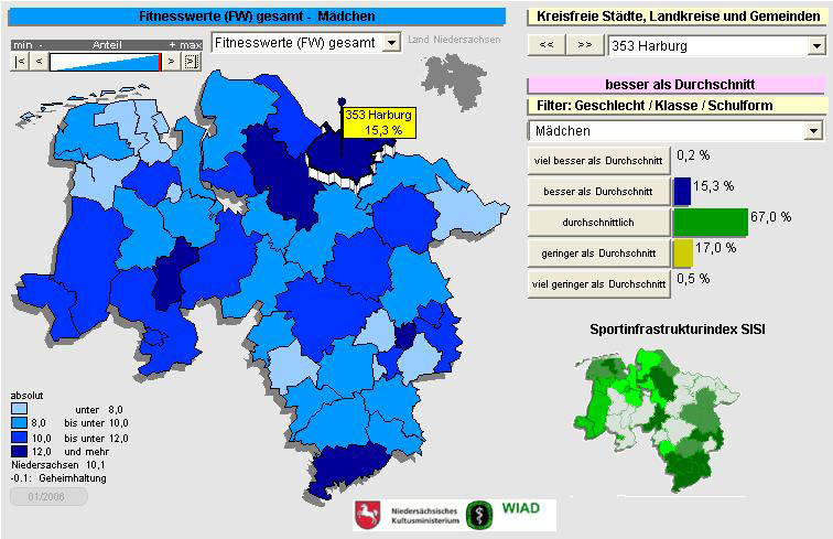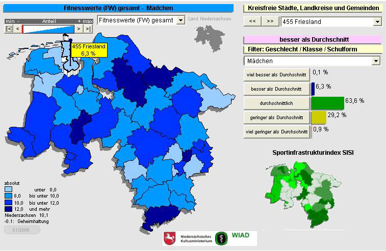 "Die Fitness der niedersächsischen Kinder und Jugendlichen liegt unterhalb des Bundesdurchschnitts. Der bereits seit dem Jahr 2000 bundesweit festgestellte Abwärtstrend in der körperlichen Leistungsfähigkeit setzt sich hier fort und muss gestoppt werden", betonte der Niedersächsische Kultusminister Bernd Busemann heute bei der Vorstellung der ersten Ergebnisse des Projekts Fitnesslandkarte Niedersachsen in Hannover.