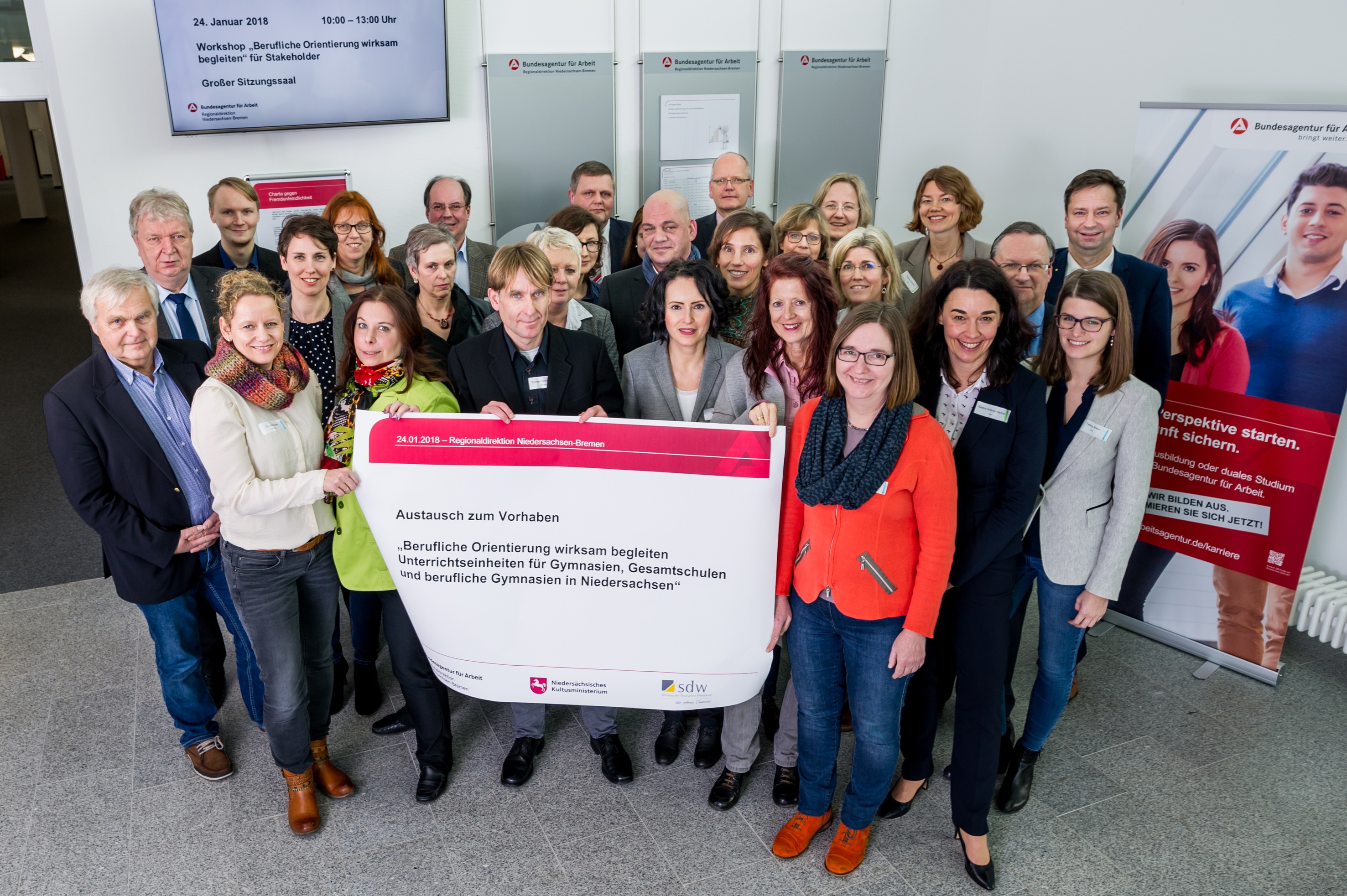 Die Berufsberatung an gymnasialen Oberstufen zu intensivieren, ist das gemeinsame Ziel des Niedersächsischen Kultusministeriums und der Regionaldirektion der Bundesagentur für Arbeit. Ihre Pläne präsentierten sie am Mittwoch, 24. Januar, in der Regionaldirektion vor Arbeitgebervertretern, Gewerkschaften, Kammern sowie Schul- und Lehrervertretungen. Im Zentrum steht ein Handbuch, in dem Lehrkräfte und Beratungsfachkräfte ihre Erfahrungen bündeln. Die Arbeitshilfe enthält erfolgreich erprobte Unterrichtseinheiten und empfiehlt Methoden, wie angehende Abiturienten auf dem Weg ins Berufsleben so unterstützt werden können, dass sie tragfähige Entscheidungen treffen. Das bundesweite Vorhaben wird mit fachlicher Unterstützung von der Stiftung der Deutschen Wirtschaft im Auftrag der Bundesagentur für Arbeit umgesetzt und an die landesspezifischen Anforderungen angepasst.