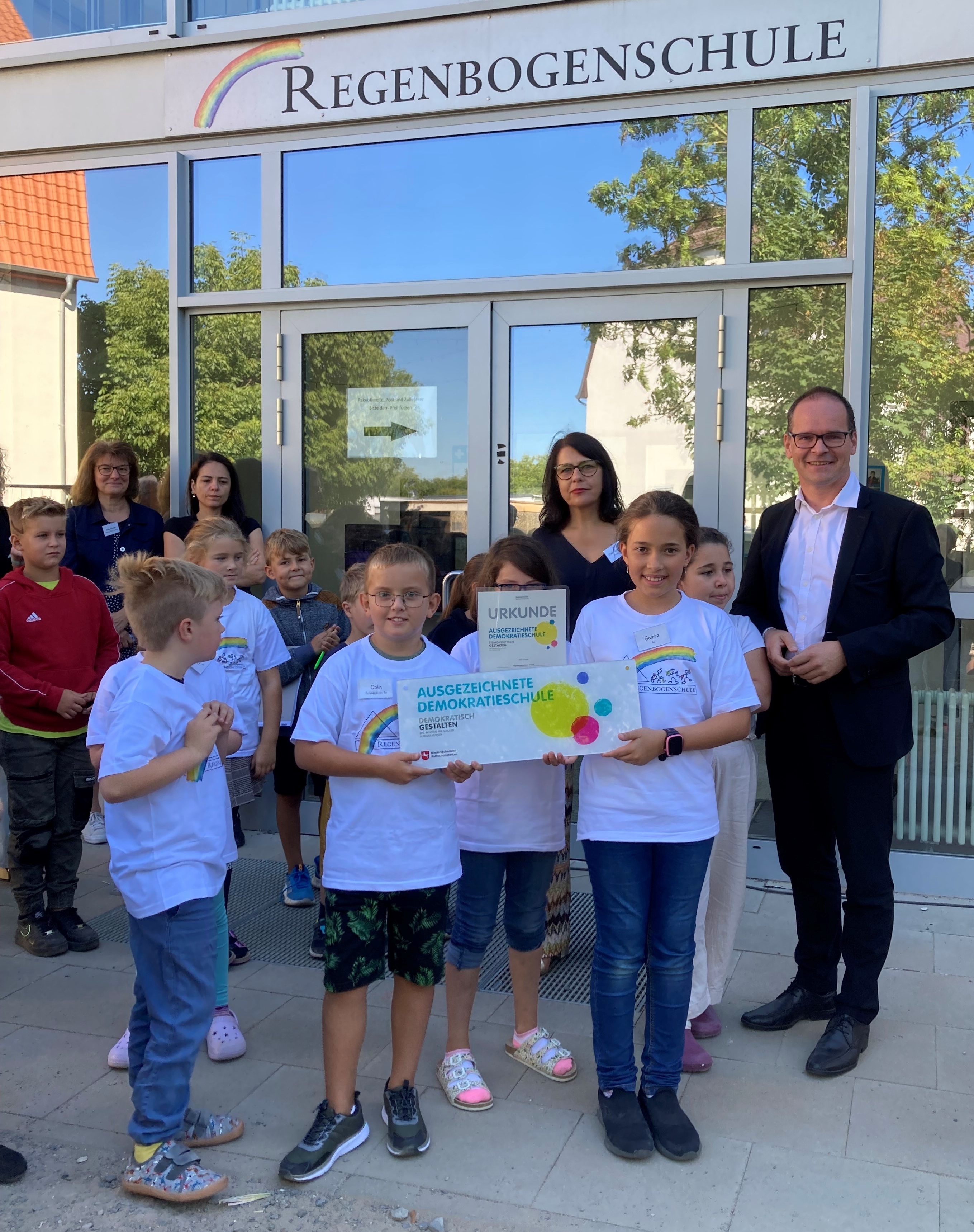 Kultusminister Grant Hendrik Tonne hat am heutigen Freitag (2. September 2022) die Regenbogenschule Seelze als „Ausgezeichnete Demokratieschule in Niedersachsen“ gewürdigt. Die Grundschule ist eine von 15 Schulen, die ausgezeichnet wird und dafür eine Urkunde, ein repräsentatives Schild, ein Preisgeld (500 Euro) sowie Material zur Demokratiebildung erhält.