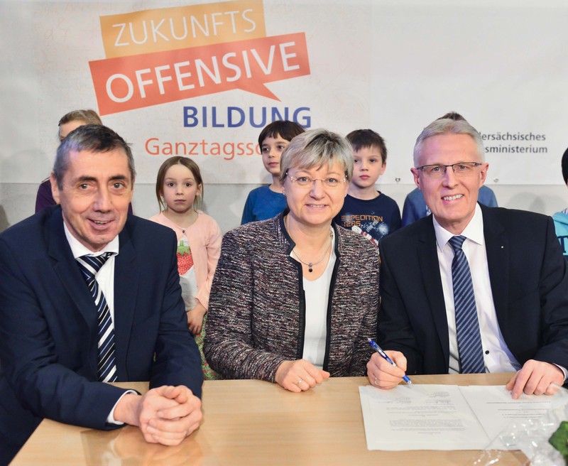„Sport spielt in unseren Ganztagsschulen eine große Rolle. Schülerinnen und Schüler bekommen neben dem regulären Sportunterricht zusätzliche Bewegungseinheiten, die gesund sind und Spaß machen. Außerdem erhalten sie die Möglichkeit, unbekannte Sportarten auszuprobieren - und zwar unabhängig vom Geldbeutel der Eltern. Der Ausbau der Ganztagsschulen in Niedersachsen bringt noch mehr Bewegung in die Schule. Davon profitieren alle Schülerinnen und Schüler“, sagte Ministerin Heiligenstadt anlässlich der Unterzeichnung. Hintergrund der Kooperation mit dem LandesSportBund sei das gemeinsame pädagogische Interesse, junge Menschen zu motivieren, lebenslang Sport zu treiben. „Der LandesSportBund ist ein wichtiger Partner bei der Ausgestaltung des Ganztagsangebotes in Niedersachsen“, so die Ministerin. „Mit seinem breiten Netzwerk an Übungsleiterinnen und Übungsleitern bereichert er das qualitätsvolle Angebot in den Schulen mit tollen Impulsen aus den Sportvereinen und erreicht in den Ganztagsschulen viele junge Menschen, um für die eigene Vereinsarbeit zu werben. Eine Win-win-Situation für alle.“