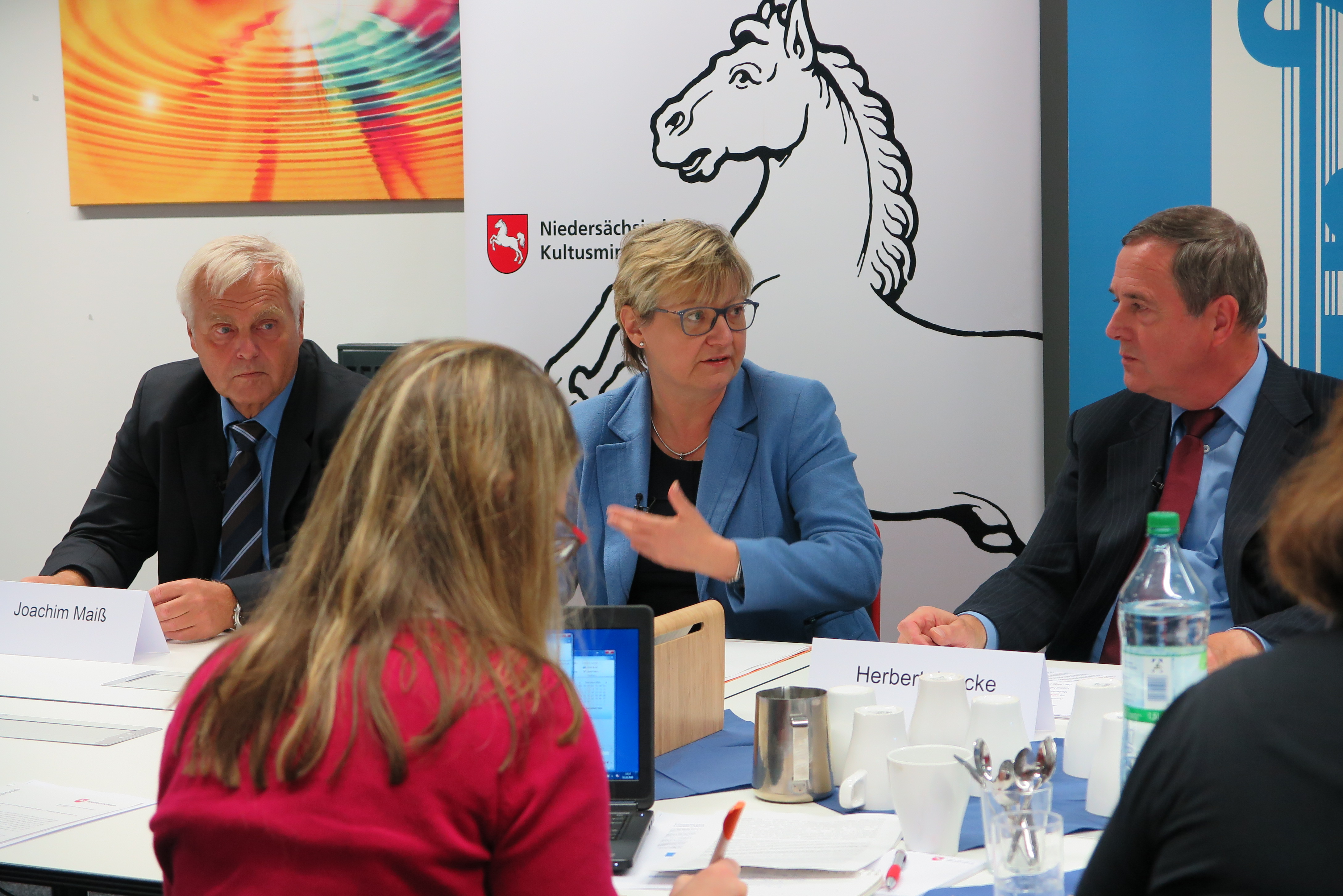 „Mit unserem landesweiten Bildungscloud-Konzept setzen wir Standards für eine moderne und zukunftsfähige Schul-IT. Besonders überzeugend finde ich den Ansatz, dass Schulen direkt an der Entwicklung der Bildungscloud mitwirken können. Damit ist sichergestellt, dass diese Plattform auch tatsächlich gut im Schulalltag genutzt werden kann“, betonte Kultusministerin Heiligenstadt anlässlich der Vorstellung des Projekts. Ziel ist es, eine kollaborative Lernplattform für alle Schulformen zu entwickeln, die schulbezogenes, schulübergreifendes und schulformübergreifendes sowie mobiles Lernen und Arbeiten ermöglicht. „Die Niedersächsische Bildungscloud wird dabei den Standards des Datenschutzes, des Urheberrechtes und den Anforderungen zum Schutz der Persönlichkeitsrechte umfassend entsprechen“, erläutert Herbert Jancke von der Landesinitiative n-21: Schulen in Niedersachsen online e. V., die vom Kultusministerium mit der Projektdurchführung beauftragt wurde.Die „Niedersächsische Bildungscloud“ vereint mehrere Vorteile in sich: Sie ermöglicht die IT-gestützte, plattformübergreifende Zusammenarbeit von z. B. allgemein bildenden Schulen mit berufsbildenden Schulen, mit regionalen Ausbildungsbetrieben, mit Universitäten oder Studienseminaren. Sie schafft Angebote zu einer schulspezifischen, schulübergreifenden und schulformübergreifenden Vernetzung von Schülerinnen und Schülern, aber auch zu einem entsprechenden Austausch von Lehrerinnen und Lehrern. Durch eine landesweite Bereitstellung von eLearning-Sequenzen kann eine wohnortnahe Beschulung auch bei örtlich sehr kleinen Zahlen von Auszubildenden in bestimmten Ausbildungsberufen gesichert werden. Nicht zuletzt bereitet das Arbeiten mit internetgestützten Lernplattformen, Netzwerken und Lernsoftware die Schülerinnen und Schüler auf die Anforderungen einer digitalisierten Arbeits- und Berufswelt vor und kann Chancen für eine verstärkte individuelle Förderung der Schülerinnen und Schüler bieten.