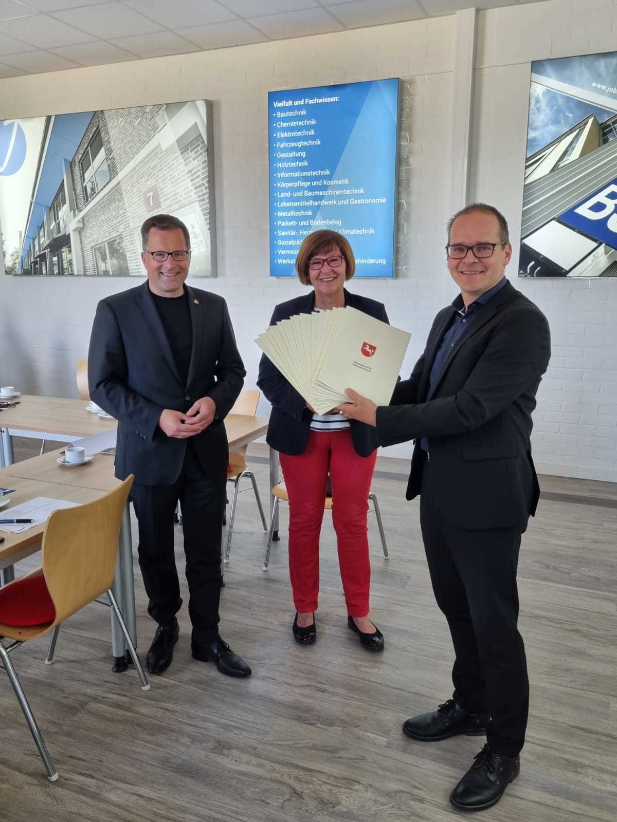 Von links nach rechts: Landrat Kai Seefried, Landtagsabgeordnete Petra Tiemann und Kultusminister Grant Hendrik Tonne