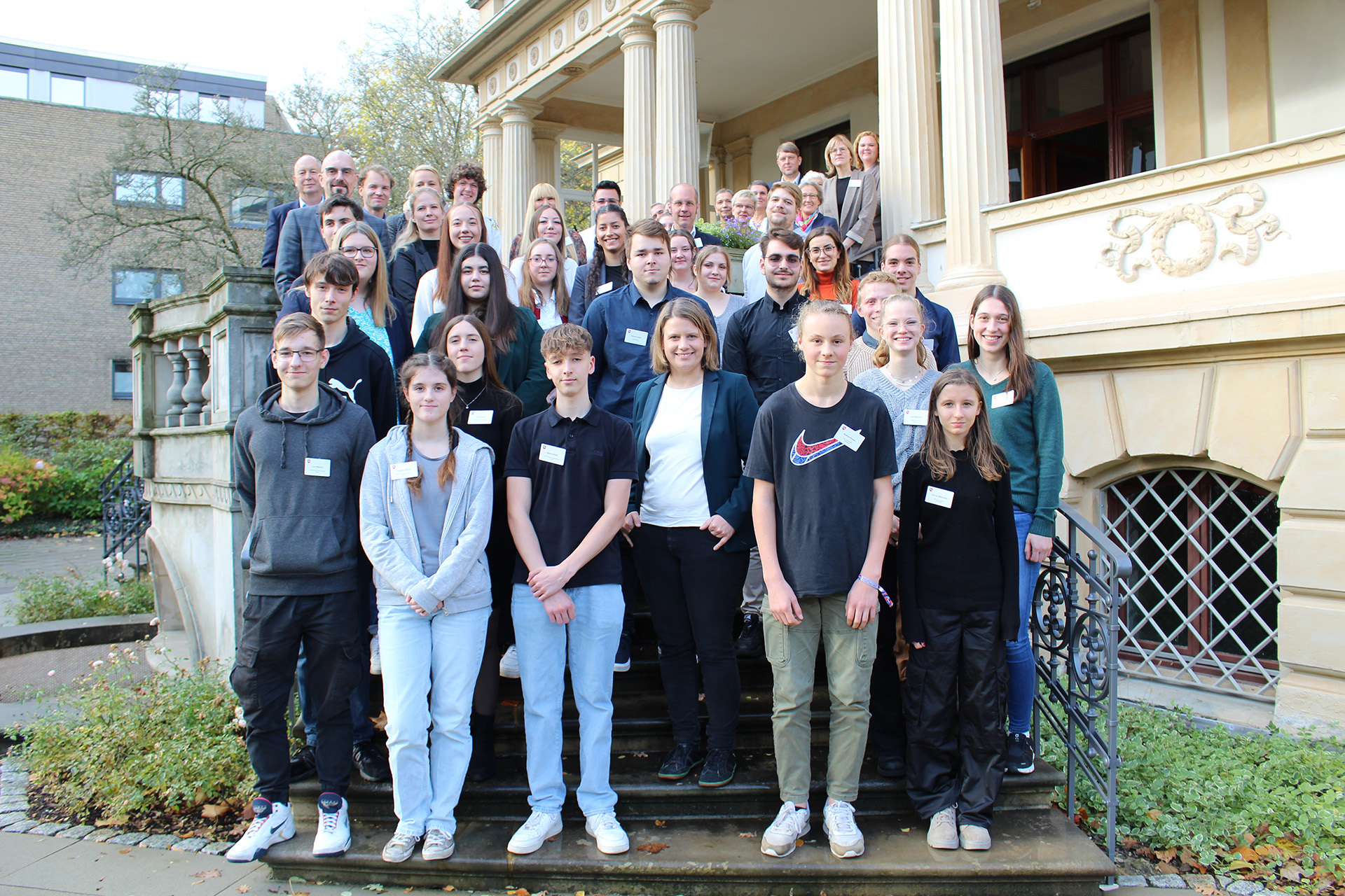 Kultusministerin Julia Willie Hamburg hat am Vormittag im Gästehaus der Niedersächsischen Landesregierung in Hannover die diesjährigen Preisträgerinnen und Preisträger des Schülerfriedenspreises und des Zivilcouragepreises ausgezeichnet. Nach einer kurzen Präsentation der Projekte überreichte die Ministerin den anwesenden Gruppen ihre Urkunden. Unterstützt wurde der Schülerfriedenspreis auch in diesem Jahr von der Westermann-Gruppe, die zusätzlich zur Auszeichnung Gutscheine für Bildungsmedien und Sachpreise zur Verfügung stellte.