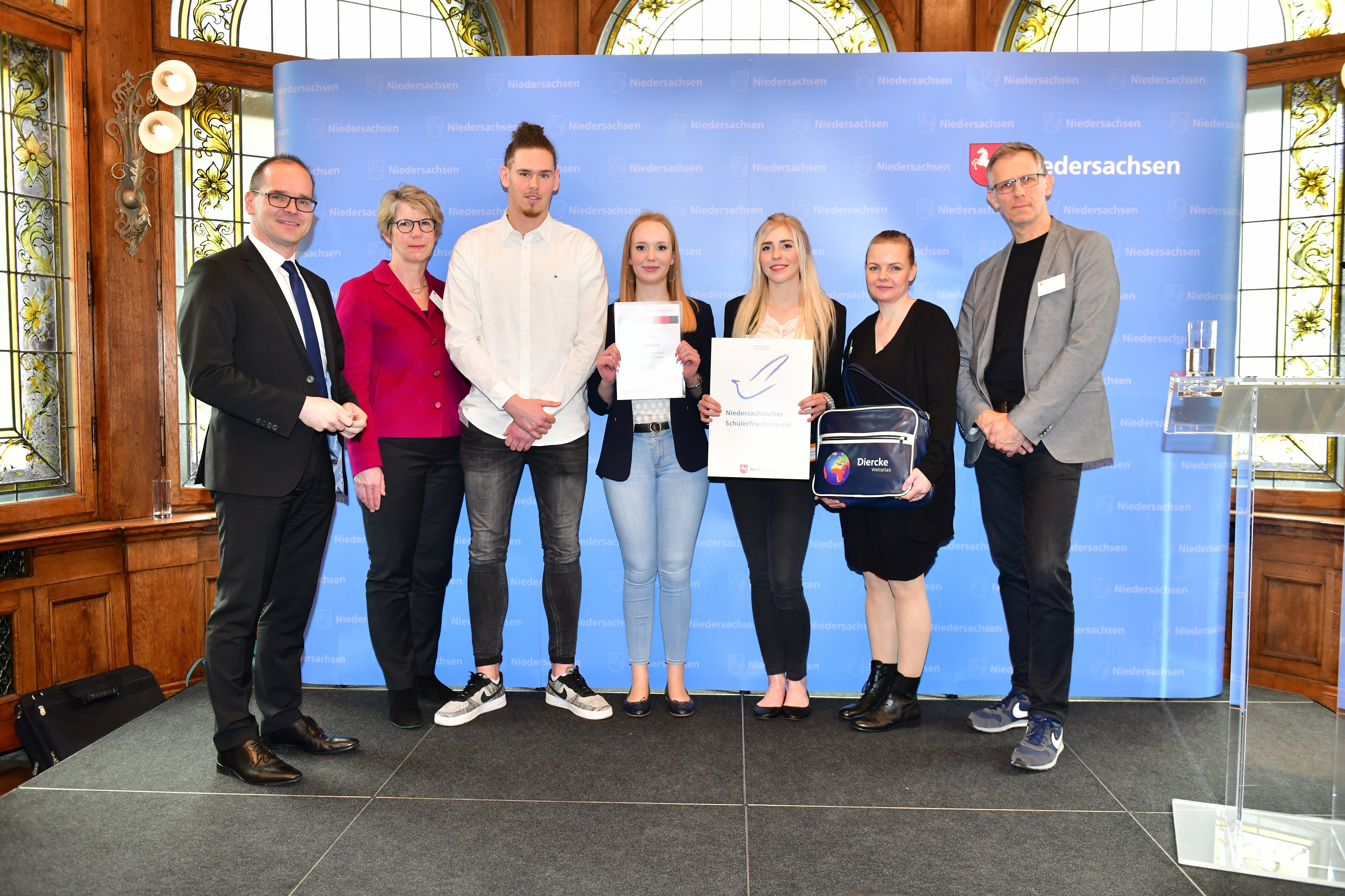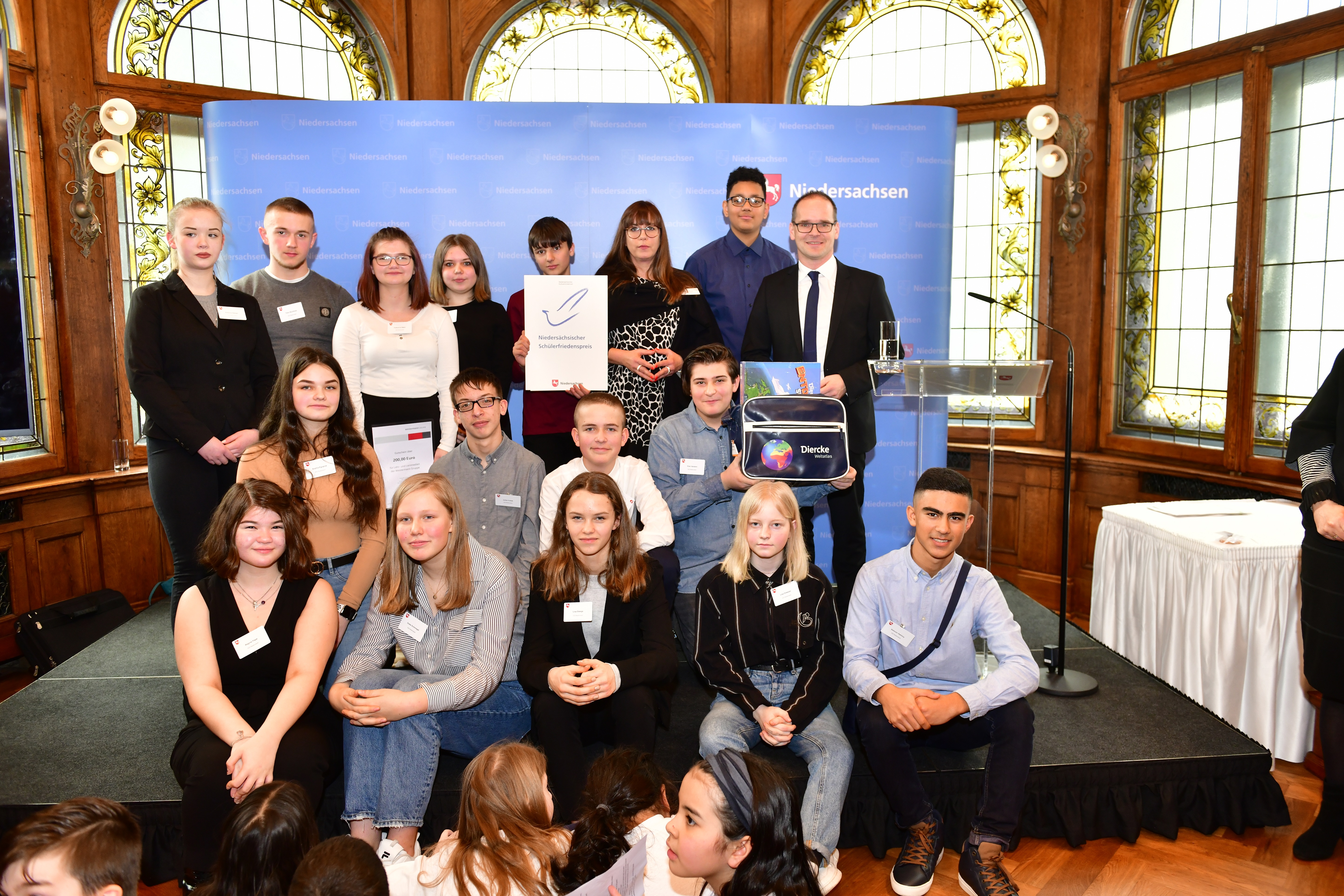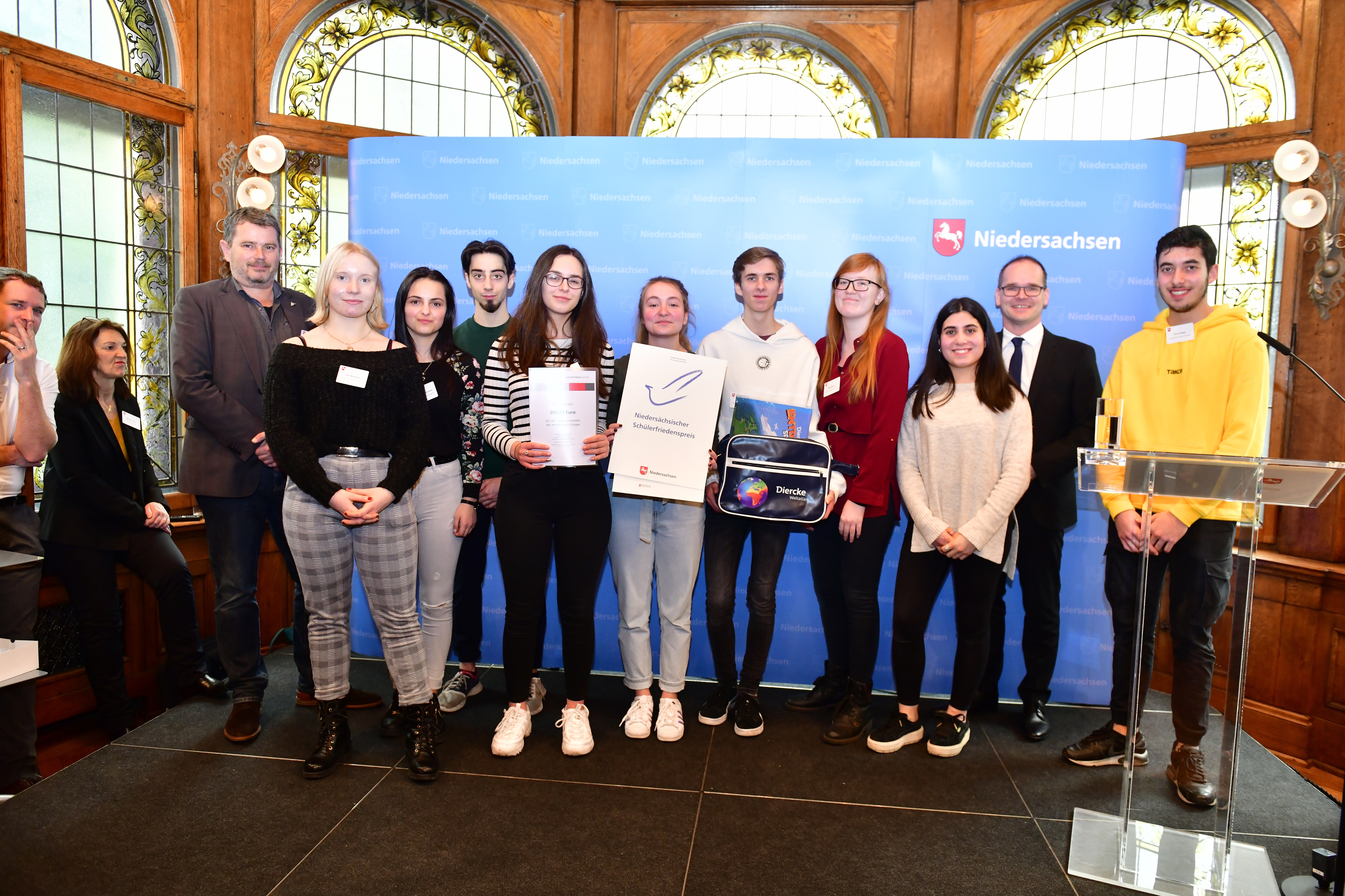 Der Niedersächsische Kultusminister Grant Hendrik Tonne hat heute in Hannover den Schülerfriedenspreis 2019, den Zivilcouragepreis sowie den Sonderpreis 70 Jahre Grundgesetz verliehen. Sechs Schulen aus Niedersachsen erhielten Geldpreise für Projekte, die Frieden, Demokratie, Toleranz und den interkulturellen Dialog fördern. Insgesamt 85 Projekte wurden von Schulen eingereicht und damit mehr als je zuvor. Die Preisträgerschulen erhielten Urkunden, Geldbeträge sowie Sachpreise der Westermann-Verlagsgruppe, die den Schülerfriedenspreis seit vielen Jahren unterstützt.
