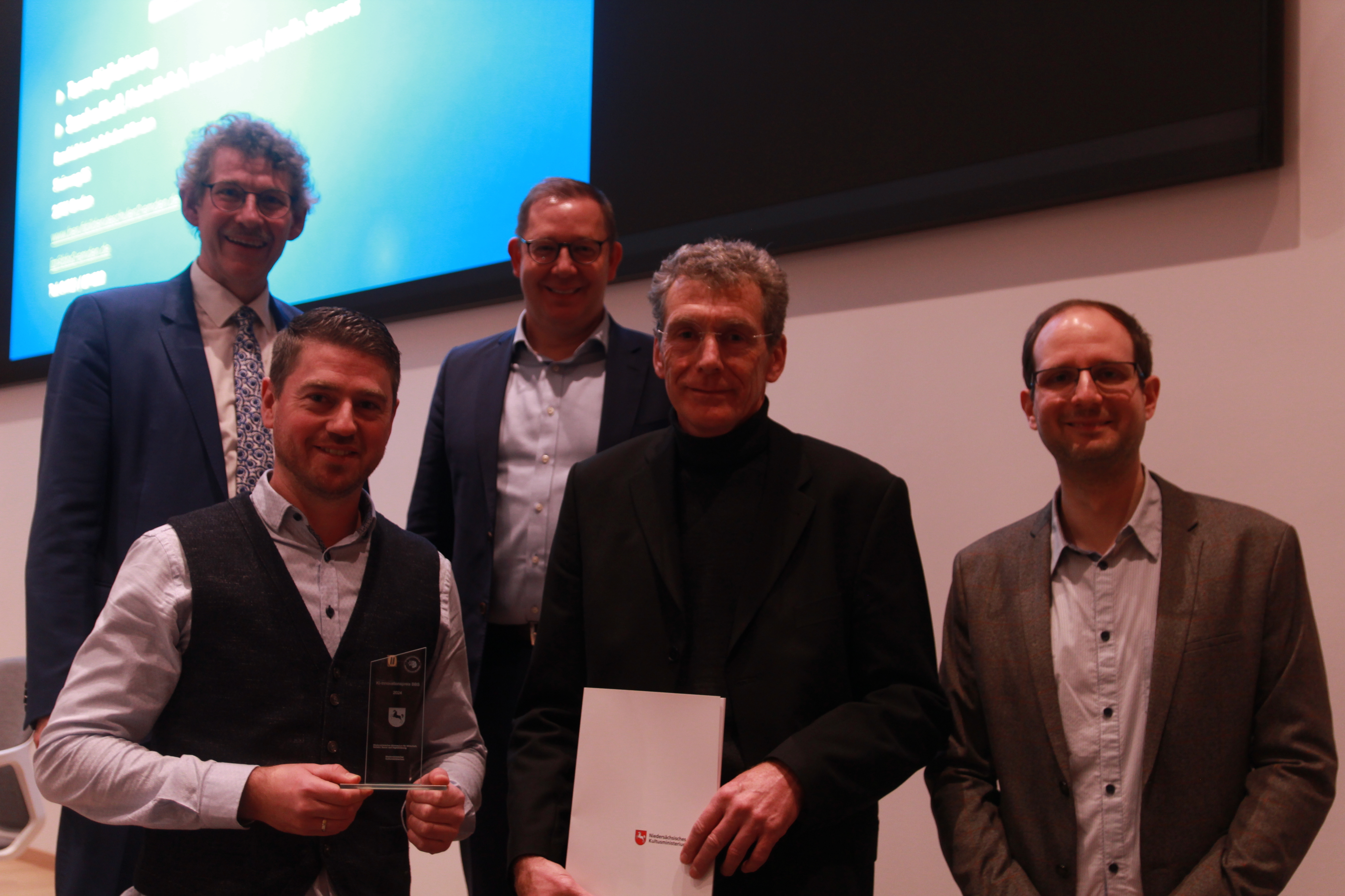 Zum ersten Mal ist am gestrigen Donnerstag (5.12.) in Hannover der KI-Innovationspreis BBS verliehen worden. Die Staatssekretäre des Niedersächsischen Kultusministeriums und des Niedersächsischen Wirtschaftsministeriums, Marco Hartrich und Frank Doods verliehen gleich fünf Berufsbildenden Schulen die Auszeichnung. Auch das Bündnis Duale Berufsausbildung (BDB) sowie die IHK Hannover beteiligten sich an der Ausrichtung des mit jeweils 5.000 Euro dotierten Wettbewerbs.