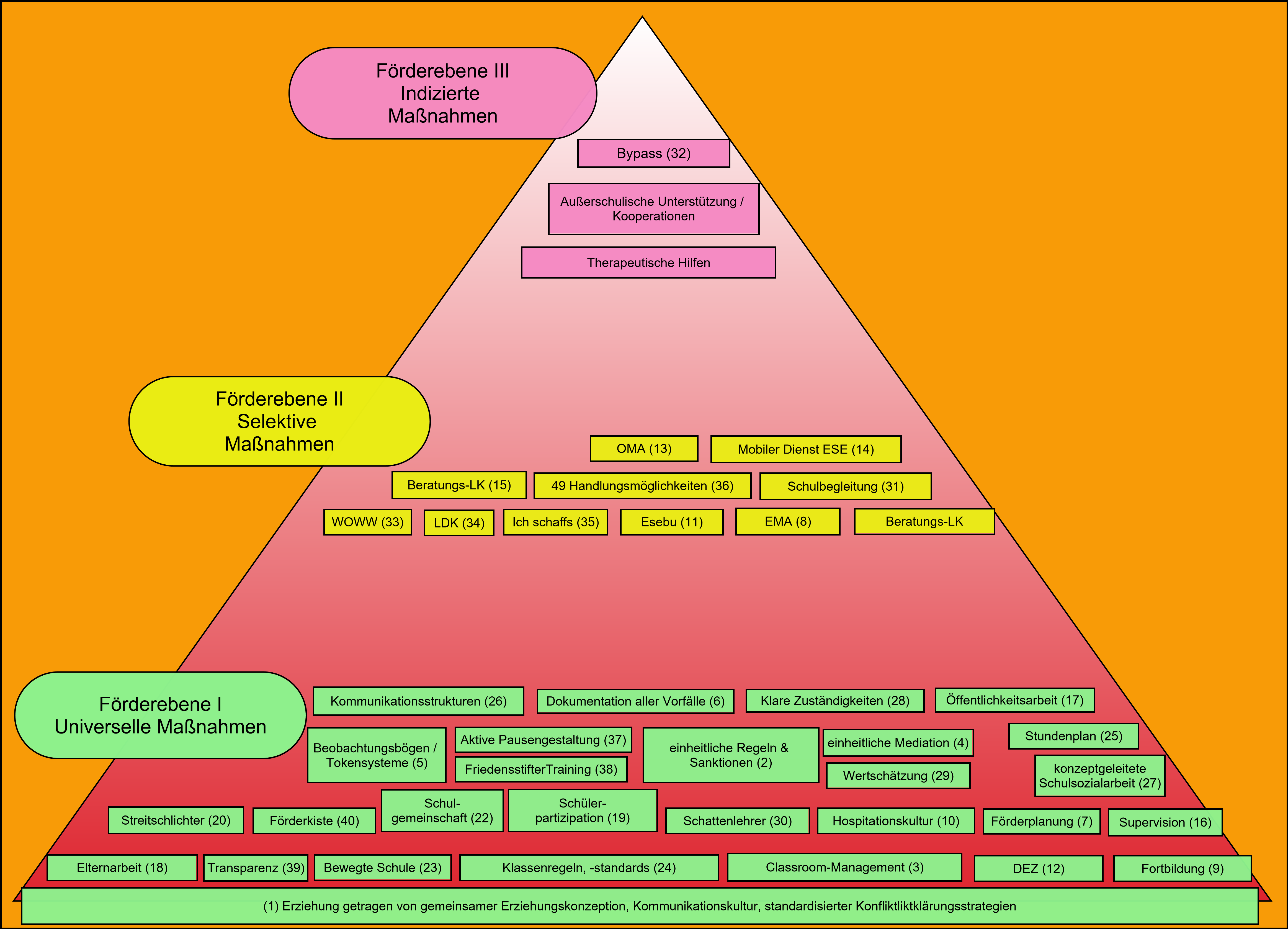 Im nächsten Schritt wurden die Ideen und Anregungen aus der Fachliteratur in Gruppenarbeit unter den Gesichtspunkten Prävention, akute Handlungsmöglichkeiten und nachhaltige Problemlösungen bearbeitet und zusammengeführt. So ist es von einem Werkzeugkoffer des Konzepts ES zu einem Werkzeugkoffer der Grundschule Vorbrück und letztlich zu einem „persönlichen Handwerkskoffer“ der einzelnen Mitarbeitenden gekommen.