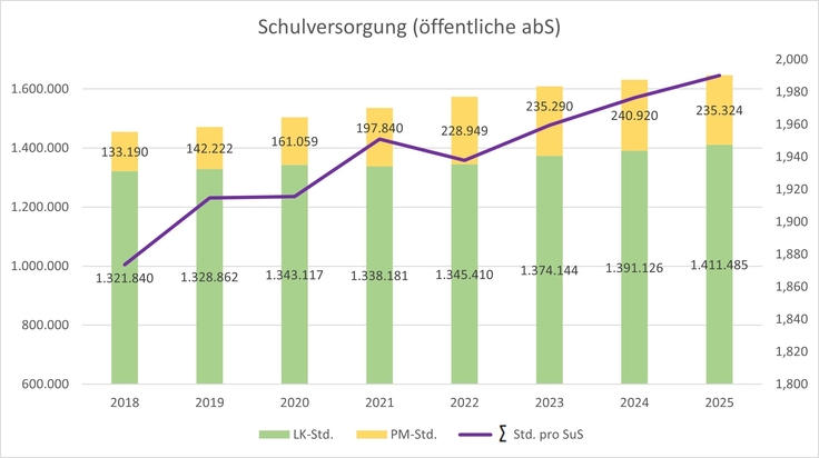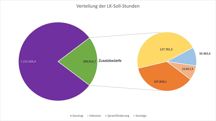 Die Aufgabenerweiterungen (u. A. Inklusion, Ganztagsbetreuung, Sprachförderung) der Schulen zeigen sich in der Zusammensetzung der Lehrkräfte-Soll-Stunden: