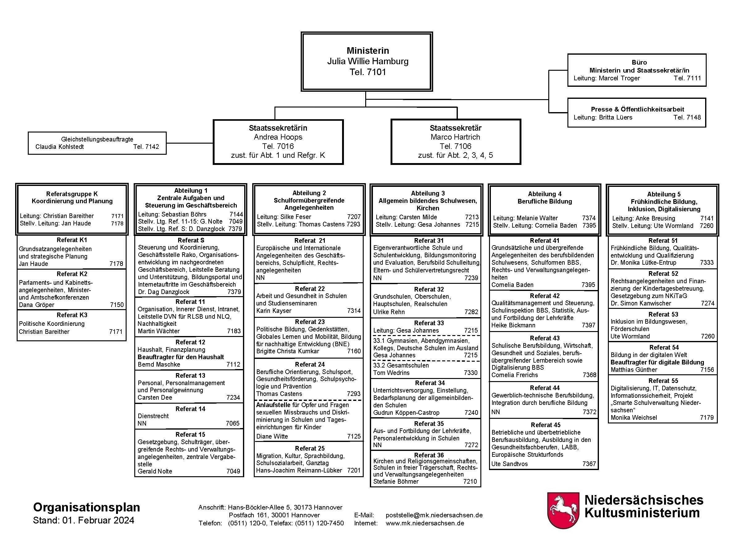Organisationsgefüge im Geschäftsbereich des Niedersächsischen Kultusministeriums, 2024